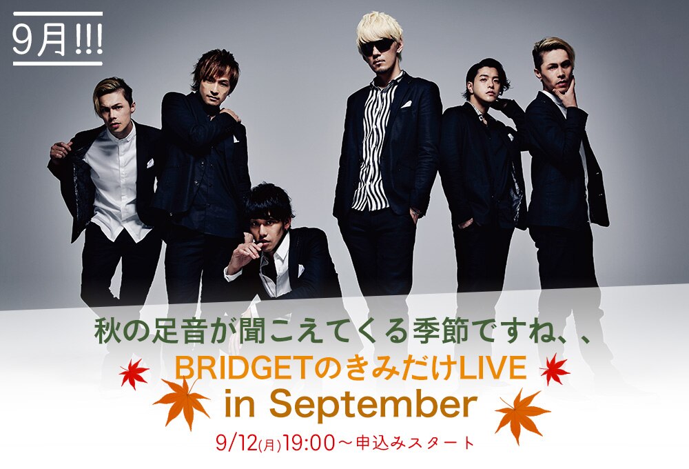 9月も終盤、秋の訪れとともにBRIDGETのきみだけLIVEもやってきます!