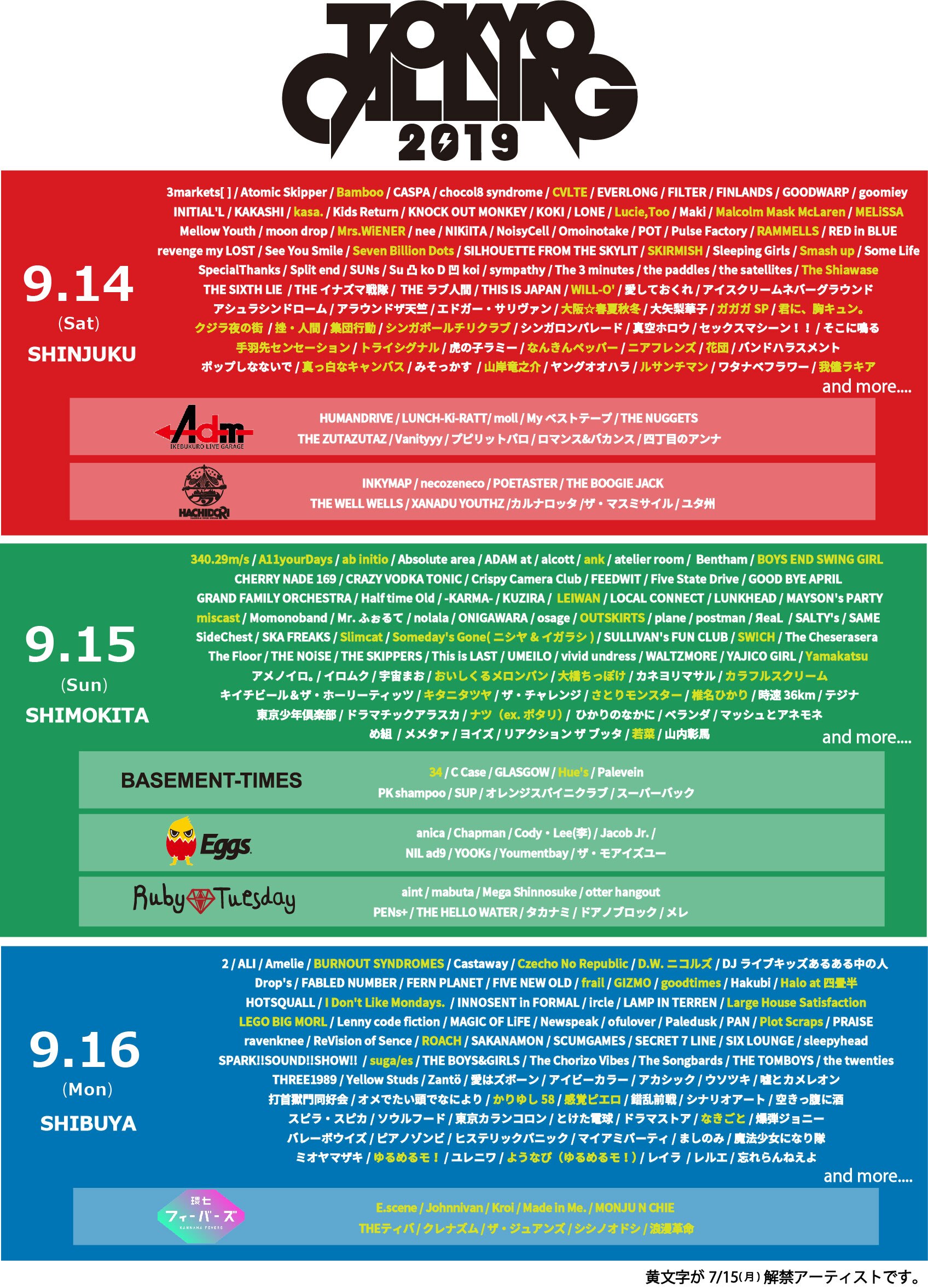 TOKYO CALLING 2019 https://tokyo-calling.jp