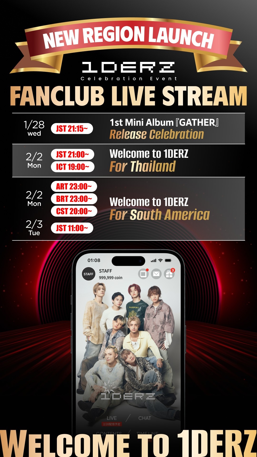 - ONE OR EIGHT OFFICIAL FANCLUB「1DERZ」アプリ、新たにアルゼンチン、ブラジル、タイ、メキシコにてリリース!“アプリ配信国追加記念” 先行入会キャンペーン、生配信も実施!