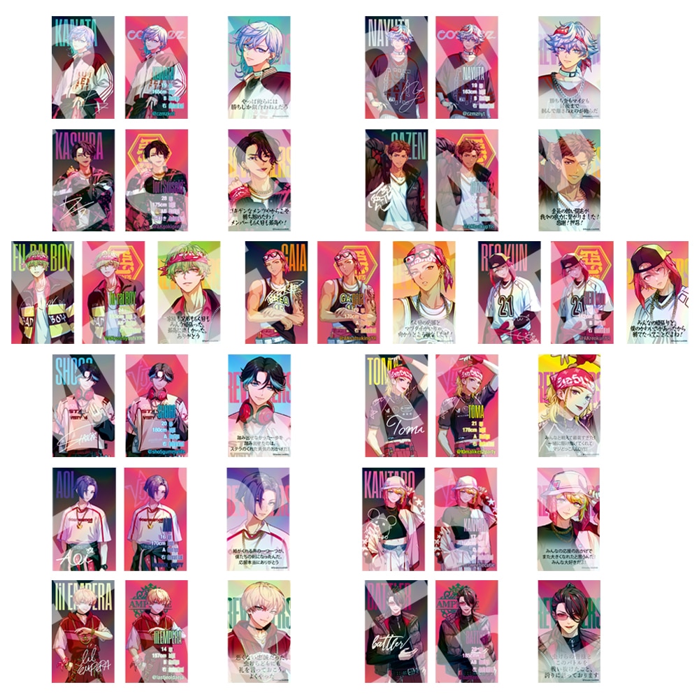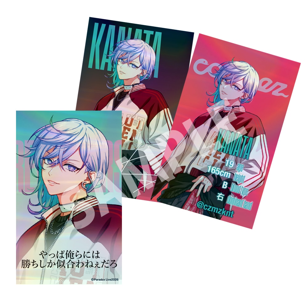 パラライ初の団体戦「Paradox Live -Battle of Unity-」に優勝したRevengers 「cozmez」「悪漢奴等」「VISTY」「AMPRULE」の4チーム13名のプロフィールカードがキラキラのホログラム加工で登場!ランダムで2枚入りです。