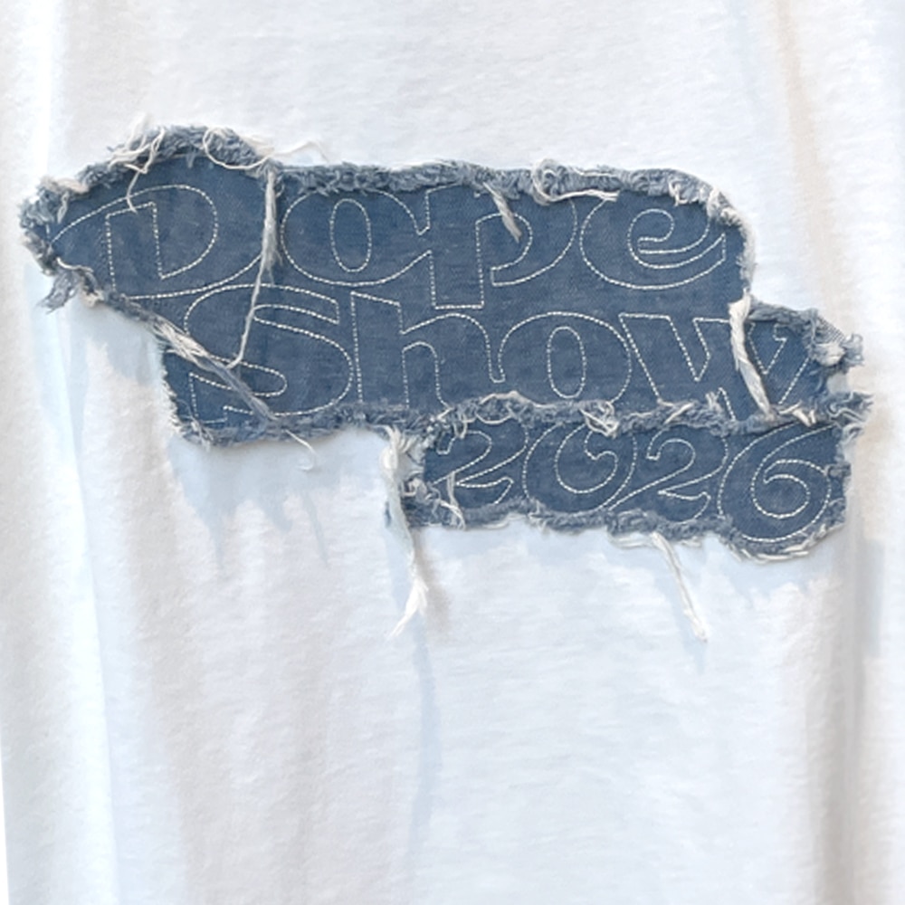 表面のDope Show 2026のロゴは、デニム生地を刺繍で縫い付けました!