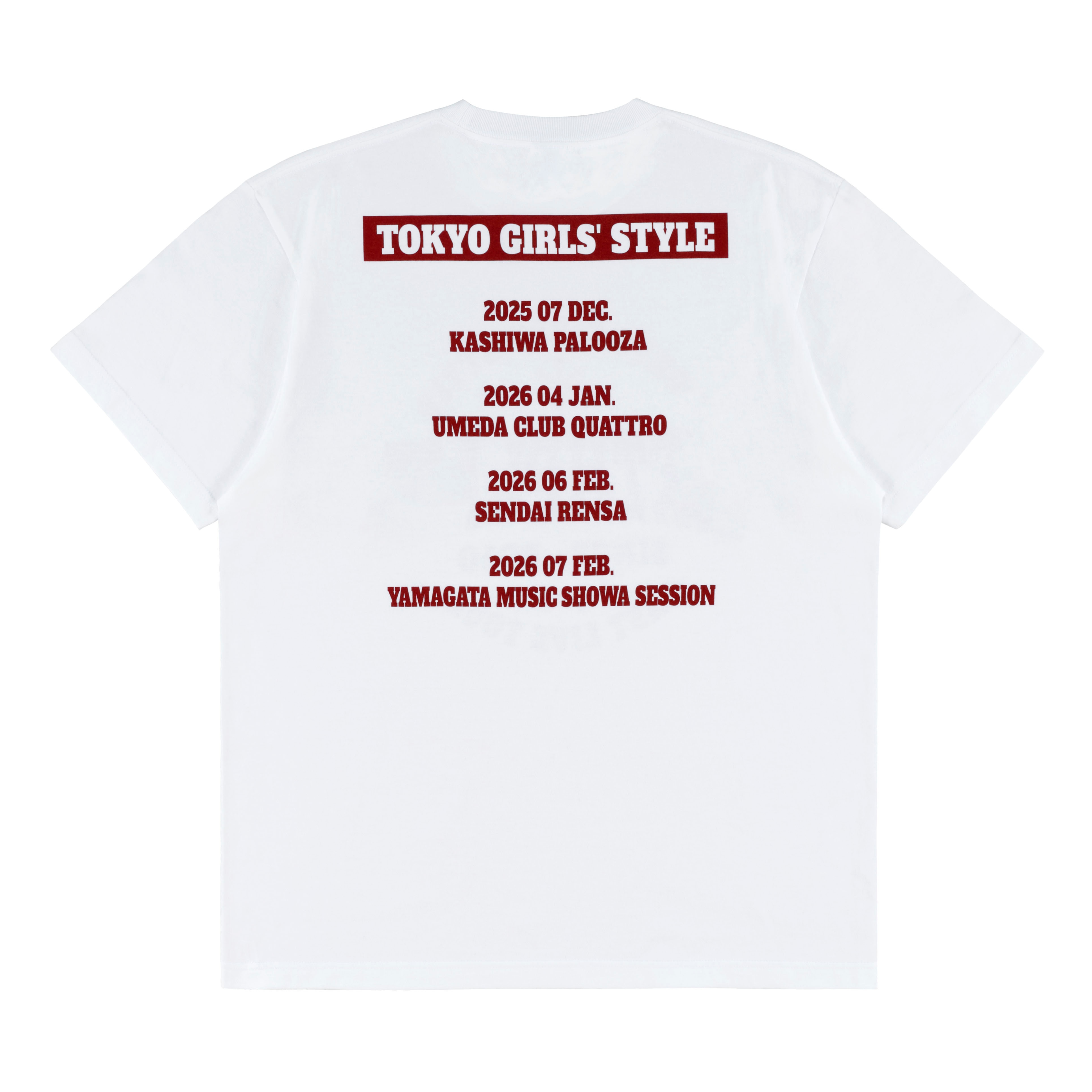 フロントにカレッジ風ロゴを、背中にはツアースケジュールをデザインしたツアーTシャツ。