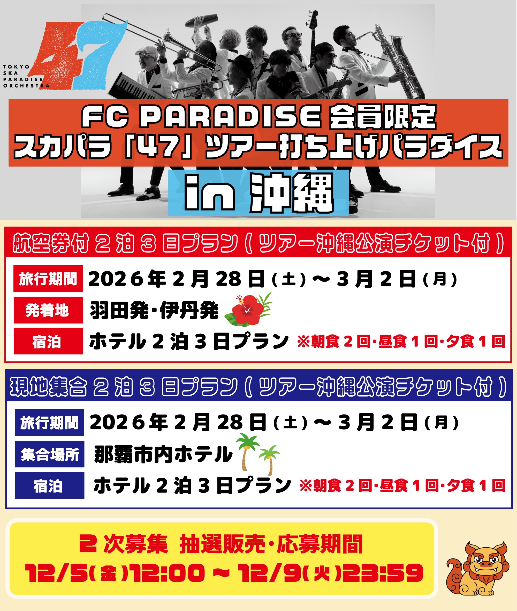 FC PARADISE会員限定【スカパラ「47」ツアー打ち上げパラダイス in 沖縄】2次募集決定!