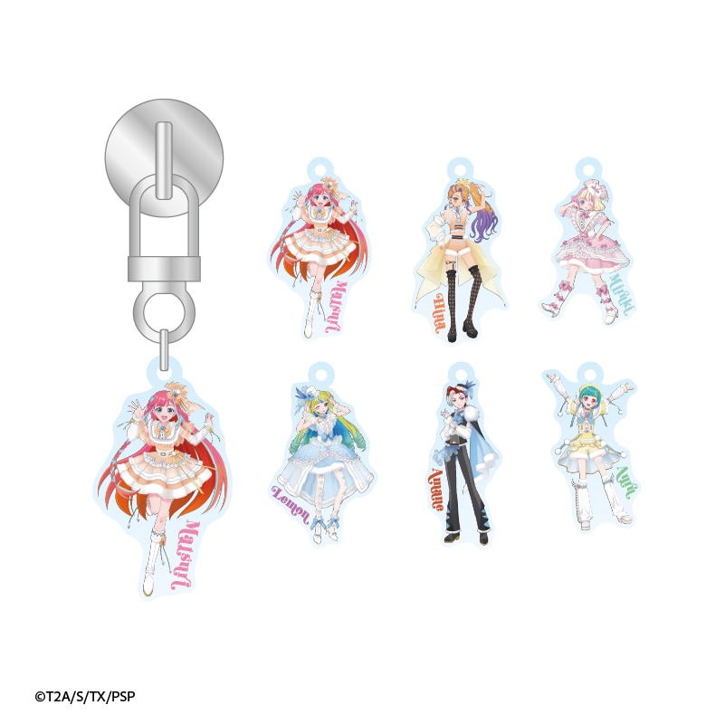 キャラクター達のイベント描き下ろしイラストをデザインしたミニサイズのアクリルチャームを、スマホなどにぶら下げられます♪