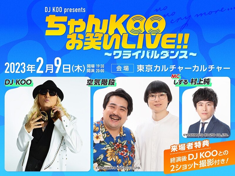 【DJ KOO】2/9(木)に東京カルチャーカルチャーにて空気階段との2マンライブを開催!MCはしずる村上