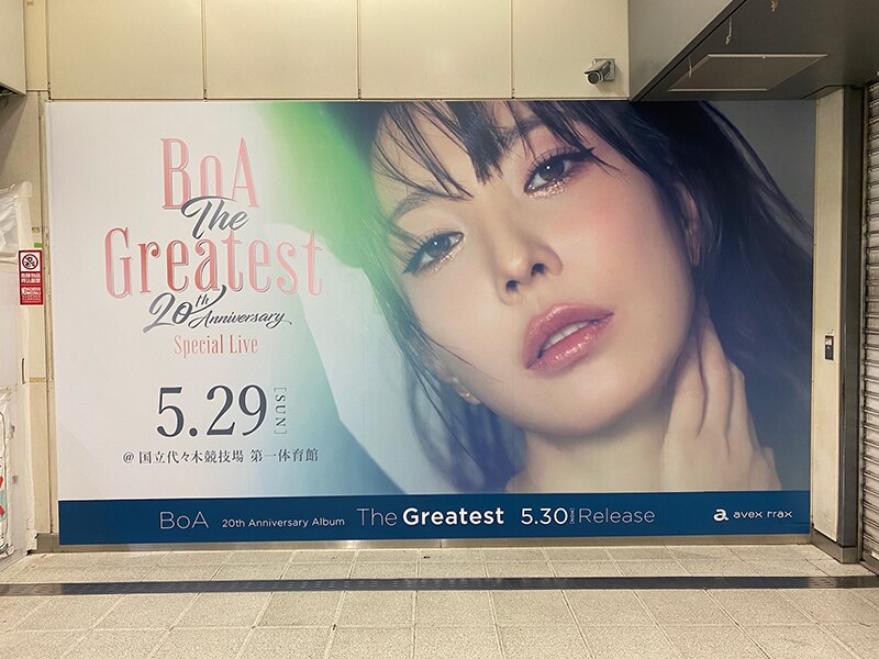 【BoA】20周年を記念したスペシャルライブ『BoA 20th Anniversary Special Live -The Greatest-』の特大ビジュアルが渋谷駅に登場!