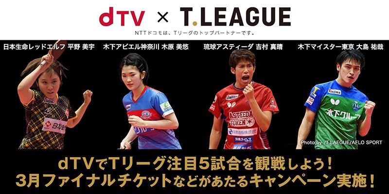 「dTV」初のTリーグ生配信!「ノジマTリーグ2021-2022シーズン」を配信! ~プレーオフファイナル観戦チケットや選手とのオンライントーク権が当たるキャンペーンを開催~
