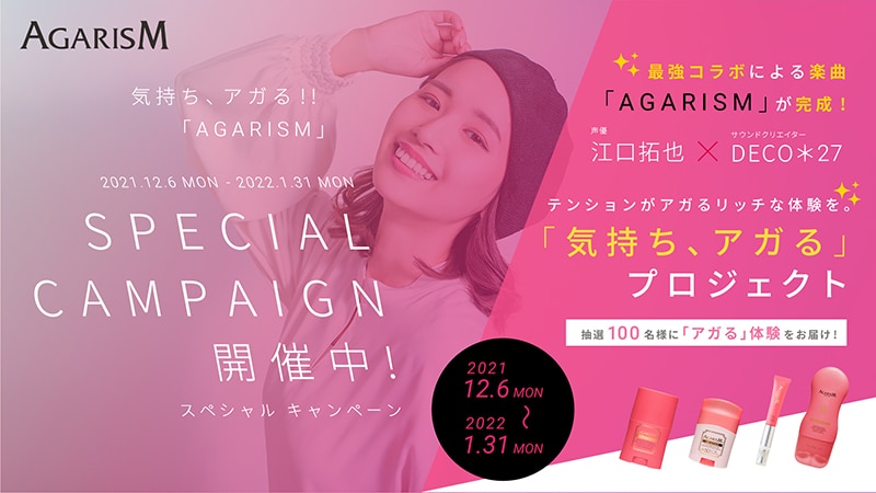 浅川梨奈、手軽に本格リフトケア「AGARISM」Web CM出演! お肌とココロのテンションをアゲる「気持ち、アガる」プロジェクト始動! ~大人気声優「江口拓也」と音楽クリエイター「DECO*27」出演オンラインイベント実施決定!~