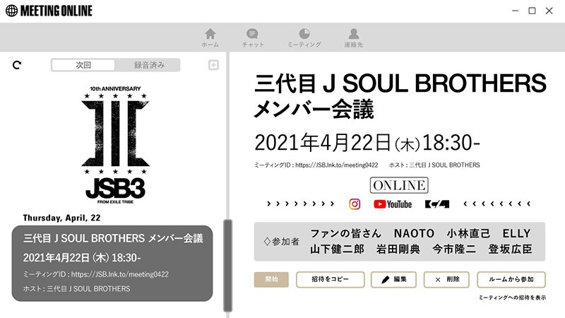 三代目 J SOUL BROTHERS from EXILE TRIBEがファンを招集?「メンバー会議」のオンライン開催を告知