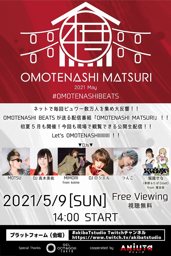 「OMOTENASHI MATSURI -2021 May-」5/9(日)開催決定!! DJ高木美佑、DJロシエル、つんこらOMOTENASHI MATSURIおなじみのDJが集結!