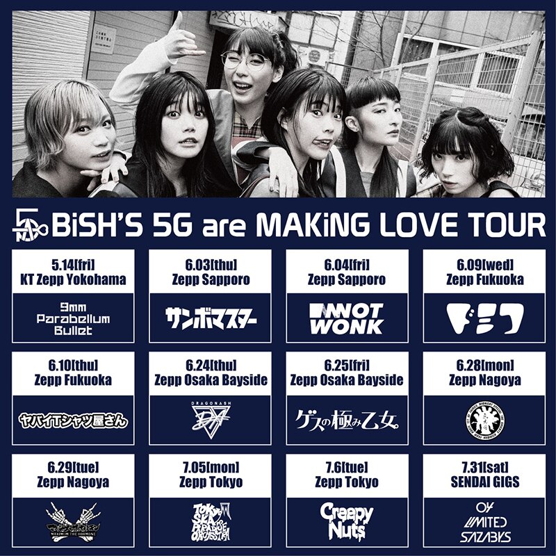 BiSH、初の対バンツアー「BiSH’S 5G are MAKiNG LOVE TOUR」全12組となる超豪華対バンアーティスト解禁!!