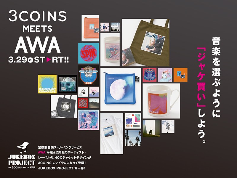3COINSとAWAがコラボレーション!「3COINS MEETS AWA」アイテムが3月29日より全国の3COINSで発売