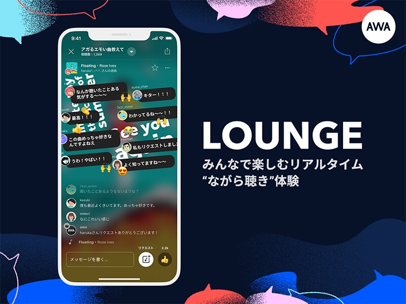 音楽プラットフォームの「AWA」誰かと一緒に楽しむ新しいリアルタイム音楽体験『LOUNGE』を正式提供開始
