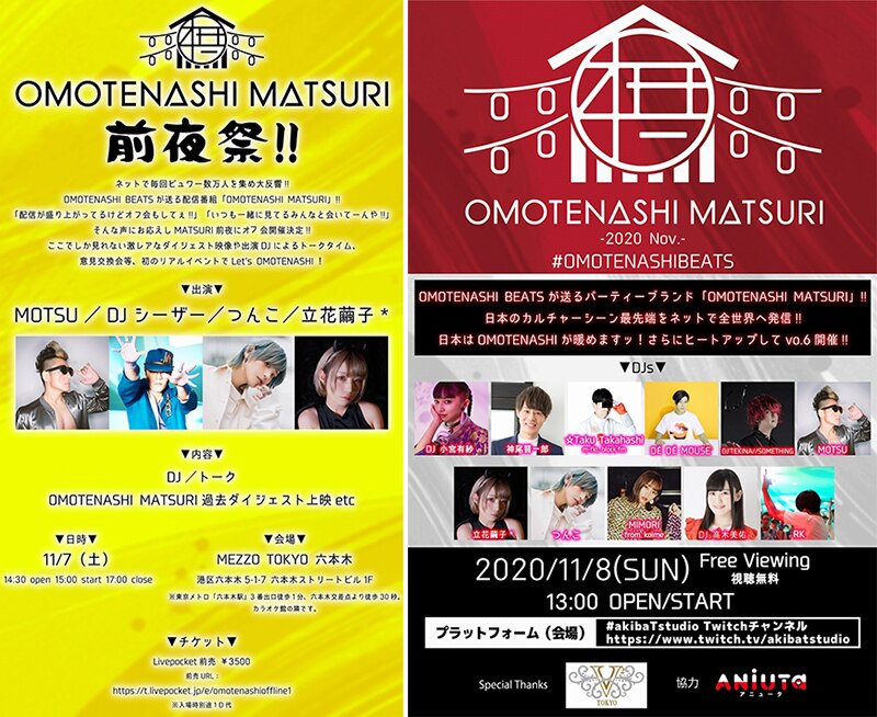 ☆Taku Takahashi、DJ 小宮有紗、神尾晋一郎ら豪華DJ陣が出演!11/8(日)開催「OMOTENASHI MATSURI -2020 November-」の全出演者が解禁!オフラインでの前夜祭開催も決定!!