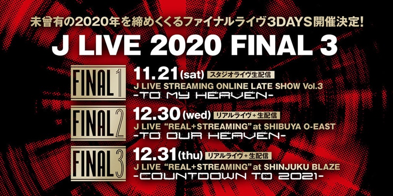 J 未曾有の2020年を締めくくるファイナルライヴ3DAYSの開催を発表! リアルライヴ+同時生配信で新たなフェーズへ