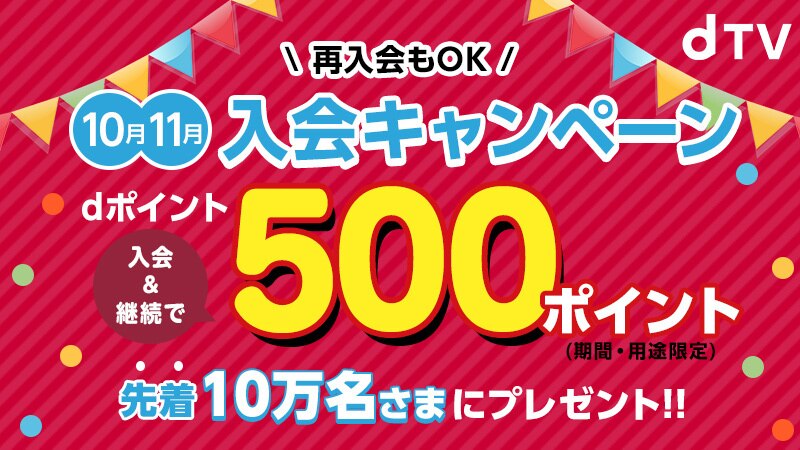 dTVに入るなら今がチャンス!先着10万名さまにdポイント500ptプレゼントキャンペーンが本日から実施!!