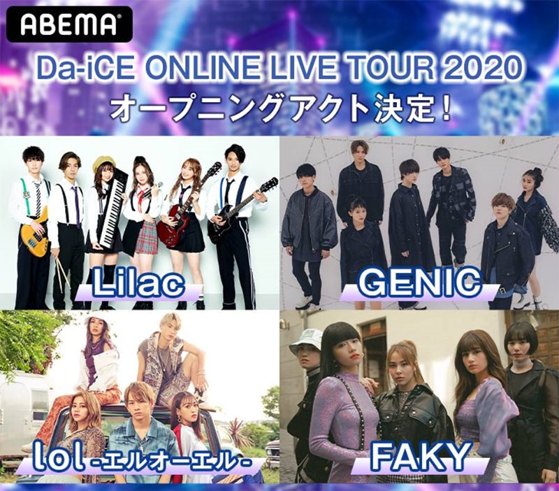 Da-iCEのオンラインライブツアーファイナルに、オープニングアクトとしてABEMAと所縁のある4組のアーティスト出演が決定!
