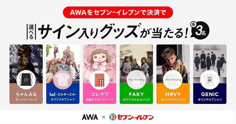 全国のセブン-イレブンでAWAプリペイドコードの販売を開始!さらに、人気アーティストのサイン入りグッズが当たるキャンペーンを開催
