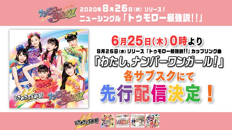 超ときめき♡宣伝部、ニューシングル「トゥモロー最強説!!」のリリースに先駆け、カップリング曲先行配信第2弾「わたし、ナンバーワンガール!」配信リリース決定!!