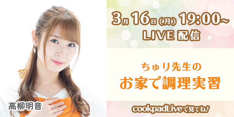 高柳明音が料理を教えてくれる!?”cookpadLive” にてオリジナル料理番組配信決定!