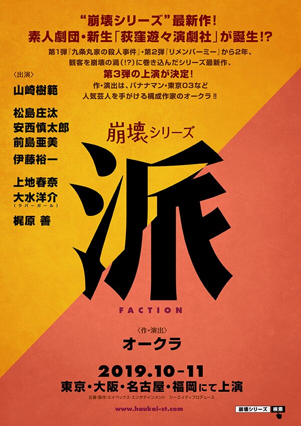 人気構成作家オークラ作・演出、“崩壊シリーズ” 待望の最新作 第3弾『派』上演決定!山崎樹範ほか、全キャスト発表!