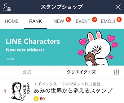 そんな彼女の名言の一つ、「あの人無理だったから安未の世界から消したの」からタイトルがつけられたLINEスタンプ「あみの世界から消えるスタンプ」がクリエイターズランキング堂々の1位に輝いた。