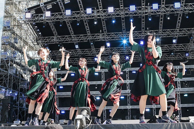 オープニングアクトのあと、「楽器を持たないパンクバンド」の異名を持つ6人組ガールズグループBiSHがa-nationに初参戦。セントチヒロ・チッチが「トップバッター、ガンガンやって帰ります!」と元気いっぱいに挨拶すると、ヘヴィなナンバーにのせて激しくヘッドバンキングを繰り出すなど、ロックなダンスと歌で会場を湧かせた。