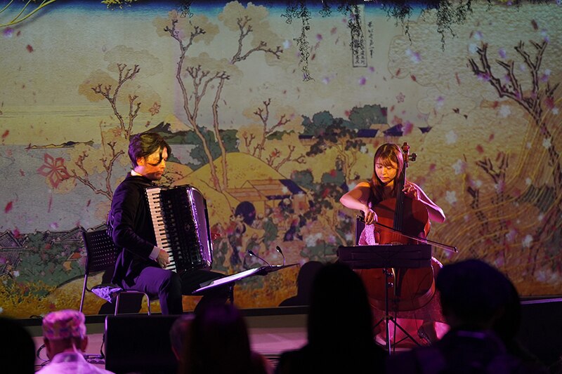 最初に演奏されたのは、2人の1stシングルでもある、ピアソラの「タンティ・アンニ・プリマ」だ。喜びと切なさが混在するこの楽曲は、花びらが舞う幻想的な空間と見事にマッチし、一気に観客を惹きつけた。