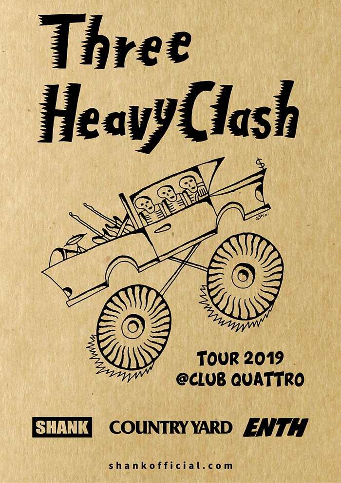 SHANK、「Three Heavy Clash TOUR 2019」ゲストにCOUNTRY YARDとENTHを発表!!