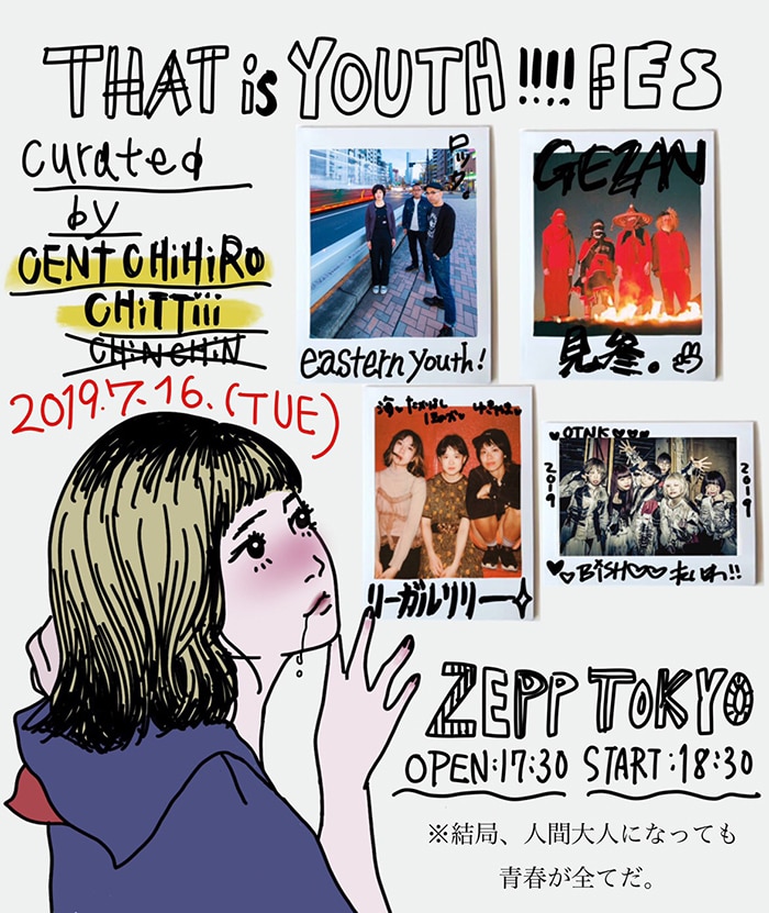 "結局、人間大人になっても青春が全てだ"をテーマに、チッチ自らがブッキング、企画、フライヤーやグッズデザインを監修する同イベントにはBiSHに加え、eastern youth、GEZAN、リーガルリリーの出演が決定。