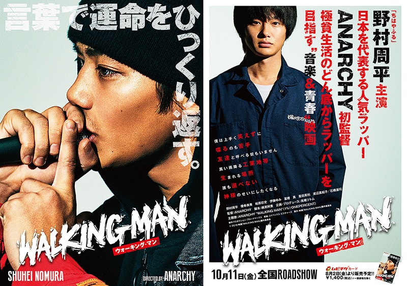 日本を代表する人気実力ともにナンバー1のカリスマラッパーANARCHYが初監督で挑む完全オリジナル作品『WALKING MAN』。ドラマ、映画といったエンタテイメントの枠にとどまらず、ファッションやカルチャーでも若者たちを牽引し、常に注目を浴び存在感を放ち続ける人気俳優野村周平が、不幸と極貧のどん底の中、ラップに出会うことで、“歩き出す”勇気をもらう気弱で心優しき主人公の青年役を担い、アトムの妹で今どきの女子高生・ウランにNHK連続テレビ小説「あまちゃん」、「デスノート」など出演の優希美青、職場の先輩で良き理解者の山本に柏原収史、思いを寄せる美女キムに伊藤ゆみがそれぞれ扮し、冨樫真、星田英利、渡辺真起子、石橋蓮司といった個性派・実力派が脇を固めます。