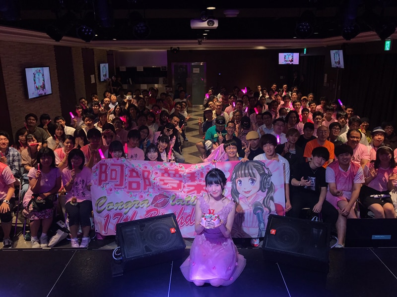 今回の生誕祭ではなんと約150人のファンが集まった。阿部は鮮やかなピンク色のドレスに身を包み現れ、