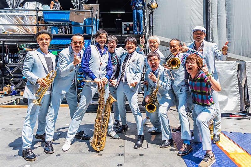 実は、スカパラが桜井和寿をゲストボーカルに迎えてデビュー30周年記念“歌モノ”シングルとして「リボン feat.桜井和寿(Mr.Children)」をリリースした8月7日に、サマソニのMARINE STAGEでMCも担当しているサッシャがナビゲーターのJ-WAVE「STEP ONE」に谷中と茂木が生出演。その際、サマソニを開催しているクリエイティブマン清水直樹社長ともサマソニ談義をしたのだが、そのとき清水社長が「スカパラのステージに桜井さん出てくれないかな?」と希望的発言をされたのだが、その時点では桜井和寿の出演はまったく決まっていない状態だった。