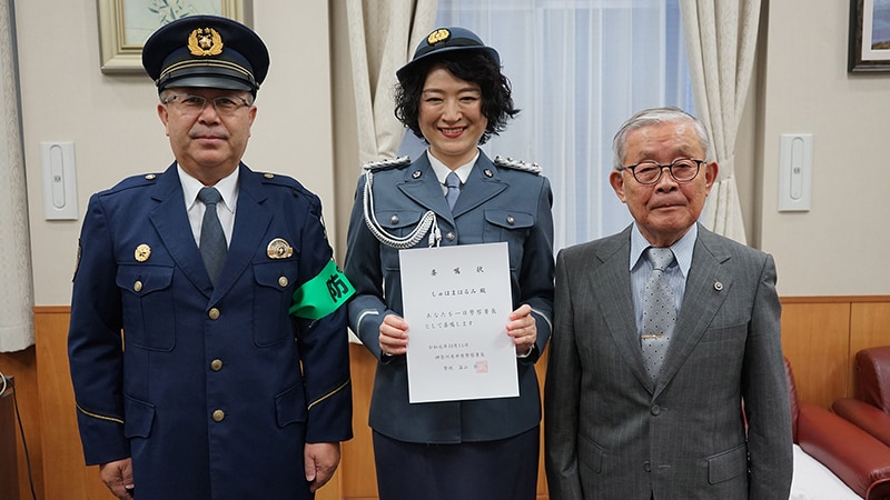 しゅはまはるみが一日警察署長就任! 振り込め詐欺防止にアドバイス!