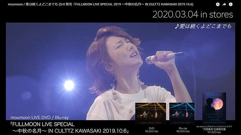 明日、3月4日に発売されるmoumoonのLIVE DVD, Blu-ray「FULLMOON LIVE SPECIAL 2019 ~中秋の名月~ IN CULTTZ KAWASAKI 10.6」より、本ライヴにて初披露された新曲のバラード「
