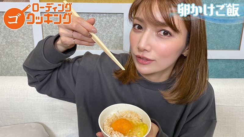今回ゴマキが紹介したローディングクッキングは “卵かけご飯” 。卵とご飯以外にごま油と顆粒だしを使用するのがポイント。レトルトご飯を電子レンジで温めてから、その後の調理時間をストップウォッチで計測すると、途中喋りながらタイムロスするも1分を切る時間で調理終了。ゴマキの大胆かつ一瞬で終わる調理に視聴者からは