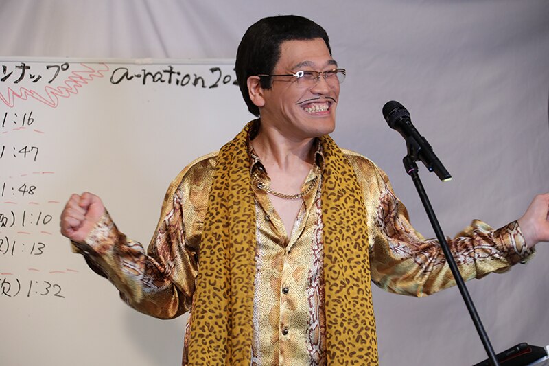 各国語でにこやかに挨拶すると、 なんと視聴者のリクエストで曲を決めるという荒業に! 結果、立って座るだけの「I’m standing」や、タイトルを壮大に裏切る恋の歌「The old toilet lady(便所ババア)」など、 ピコ太郎にしか生み出し得ないシュール極まりない世界観を展開す る。MCでは「人と人が手をつなぐために、手を洗おう」 と熱弁し、「PPAP-2020-」を披露。 ハンドウォッシュで笑いと感動を与えてくれたのは、 さすが世界的アーティストである。