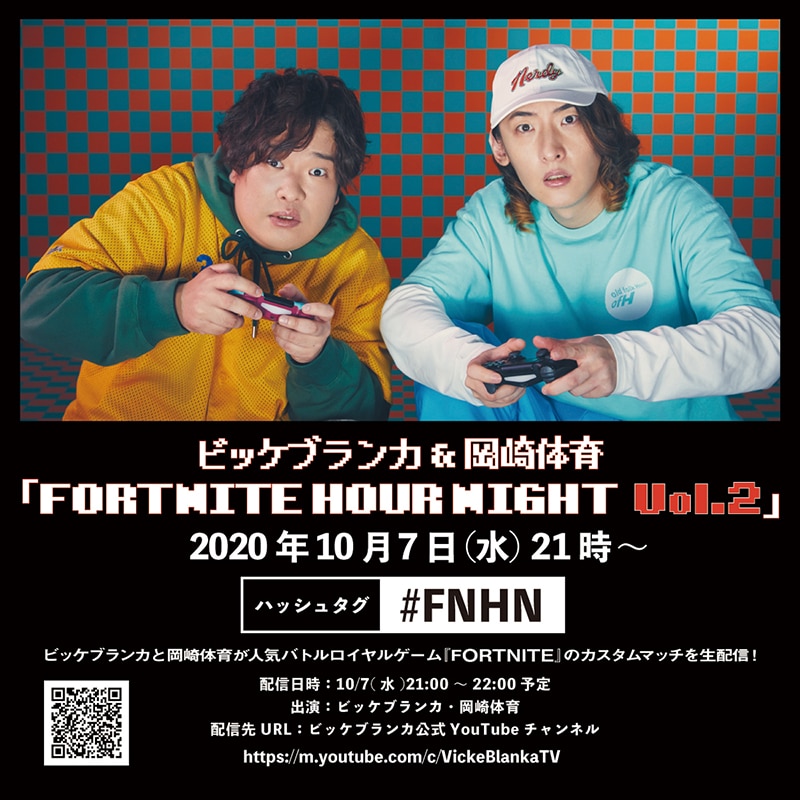 そして、音楽と共にゲームを愛するビッケブランカと岡崎体育が10月7日(水)の21時より、ビッケブランカ公式YouTubeチャンネルで「FORTNITE HOUR NIGHT vol.2」を開催することがわかった。