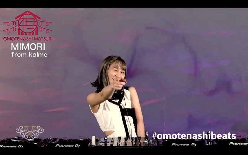 続いて、OMOTENASHI MATSURIお馴染みのMIMORI from kolmeが登場。毎回ベストパフォーマンスを更新していくMIMORIは、1曲目から自身が所属するkolmeの未配信曲でスタート。サカナクション 「バッハの旋律を夜に聴いたせいです。」、Da-iCE「FAKE ME FAKE ME OUT」、Awesome City Club「ダンシングファイター」など季節に合った気持ちの良いオシャレな楽曲を選曲。グッドミュージック続出のプレイに、毎度ながら「選曲最高」「気持ちいい!」などのコメントでチャット欄が埋められた。