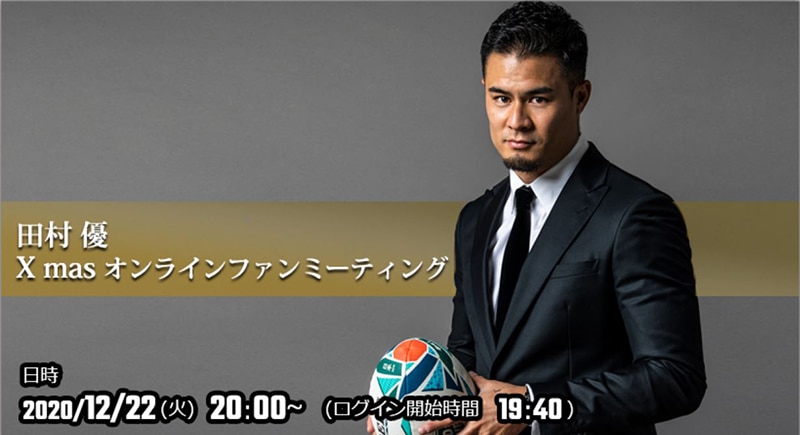 ラグビー日本代表の田村優が、12月22日(火)20時より「田村優 Xmas オンラインファンミーティング」を行うことを発表した。