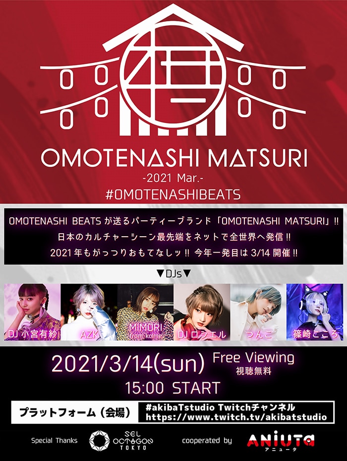 早くも2021年のハイライトの一つになるであろう「OMOTENASHI MATSURI -2021 March-」をぜひリアルタイムでチェックしてほしい。