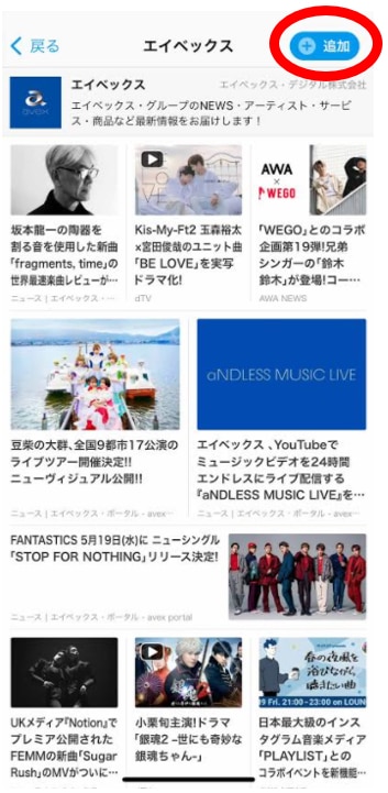 ページが表示されたら、右上の【追加】ボタンをタップすれば完了。