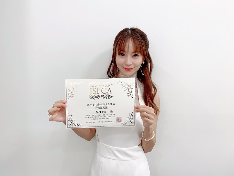 歌手でタレントの鈴木亜美が、「スパイス香辛料ソムリエ」を取得していたことをインスタグラムで報告した。
