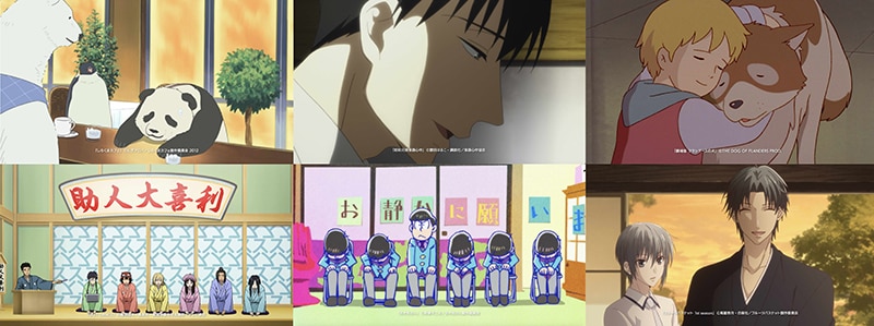 登場作品:「秒速5センチメートル」「暗殺教室」「NARUTO」「しろくまカフェ」「カードキャプターさくら クリアカード編」「おそ松さん」「ノラガミ」「キャプテン翼」「懺・さよなら絶望先生」「劇場版「進撃の巨人」Season 2~覚醒の咆哮~」「言の葉の庭」「昭和元禄落語心中」「劇場版 フランダースの犬」「うる星やつら デジタルリマスター版」