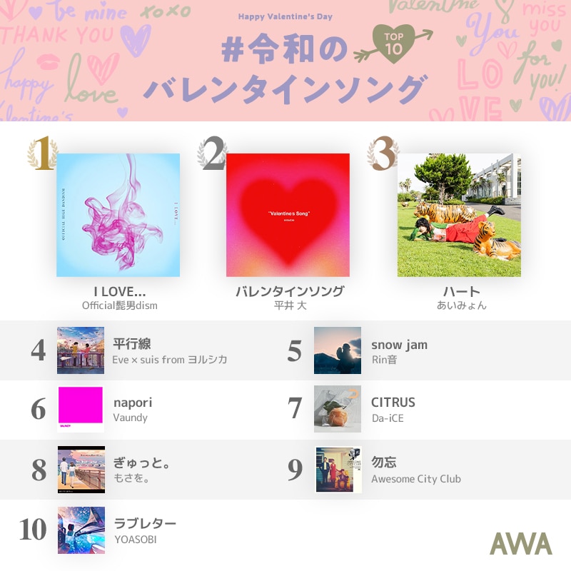 ■AWAユーザーが選ぶ!令和のバレンタインソング TOP10