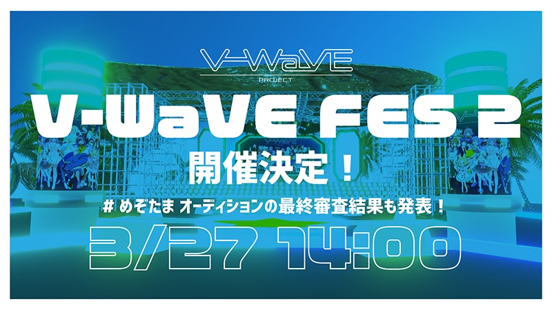 avexとTWHがタッグを組んで設立した新進クリエイターエージェンシーWaVEによる「V-WaVE PROJECT」が、所属のVtuber、2.5次元系のクリエイターがバーチャル空間にてライブパフォーマンスをお届けする「V-WaVE FES」の第2弾が、3月27日(日)14:00~よりV-WaVE公式YouTubeにて配信ライブを行うことを発表した。