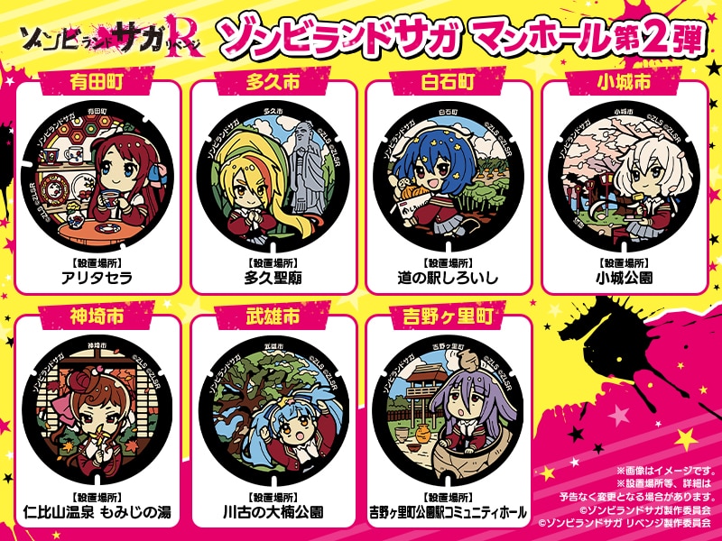 オリジナルTVアニメ「ゾンビランドサガ」「ゾンビランドサガ リベンジ」佐賀県全20市町への「ゾンビランドサガマンホール」設置プロジェクトが始動!