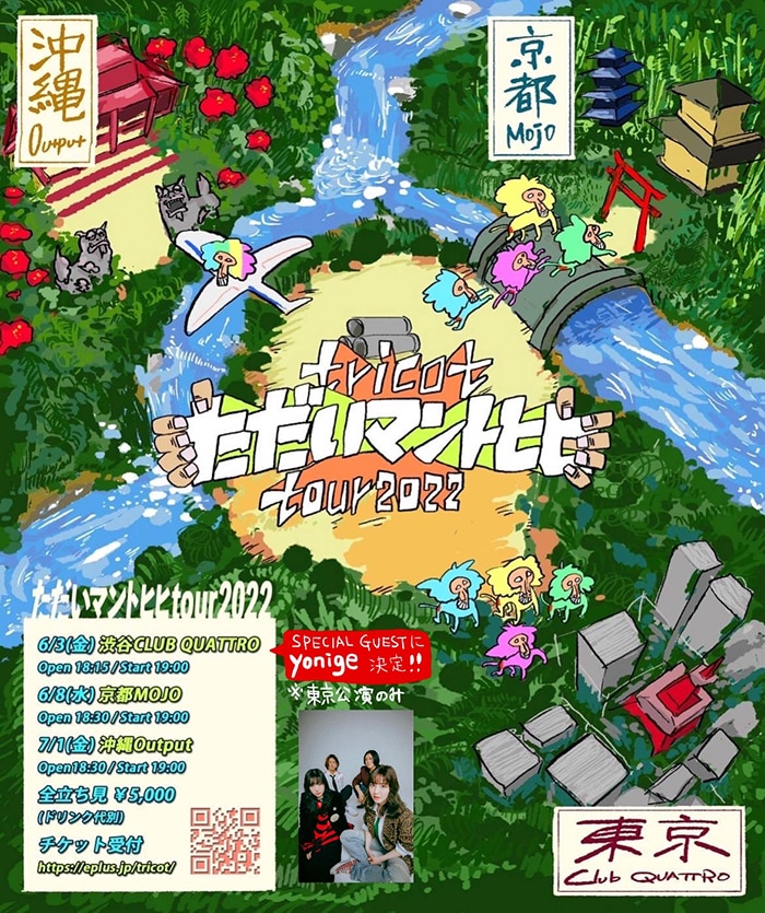tricotのワンマンツアー『ただいマントヒヒtour 2022』初日 6/3(金)東京・渋谷クラブクアトロ公演に急きょ、Special Guest Bandとしてyonigeの出演が決定!