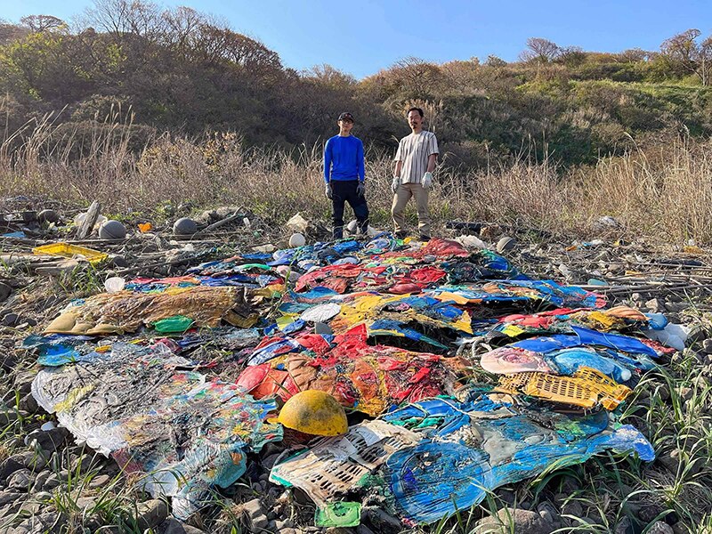 海ゴミは人間の営みから生まれているが、日々の生活から社会の背後にあるこうした問題は見えづらいもの。作家自らが回収した海ゴミを素材とした本作品を広場に展示することで、エシカルやサスティナビリティへ向けた社会課題を可視化する存在として発表。