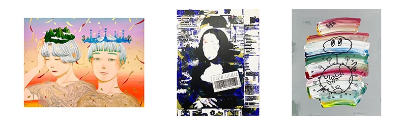 藤本まり子「YAMAKAMI MINAKAMI」2022年、NIIMI HIROKI「Mona Lisa_PDCA」2022年、山田美優「Space Station」 2022年